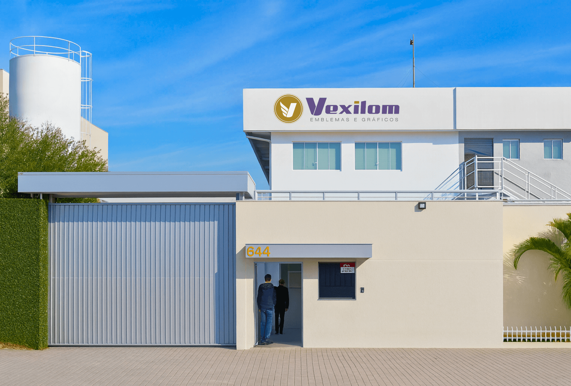 Nova fase com a mudança de nome para Vexilom Emblemas Gráficos, consolidando a marca no mercado.